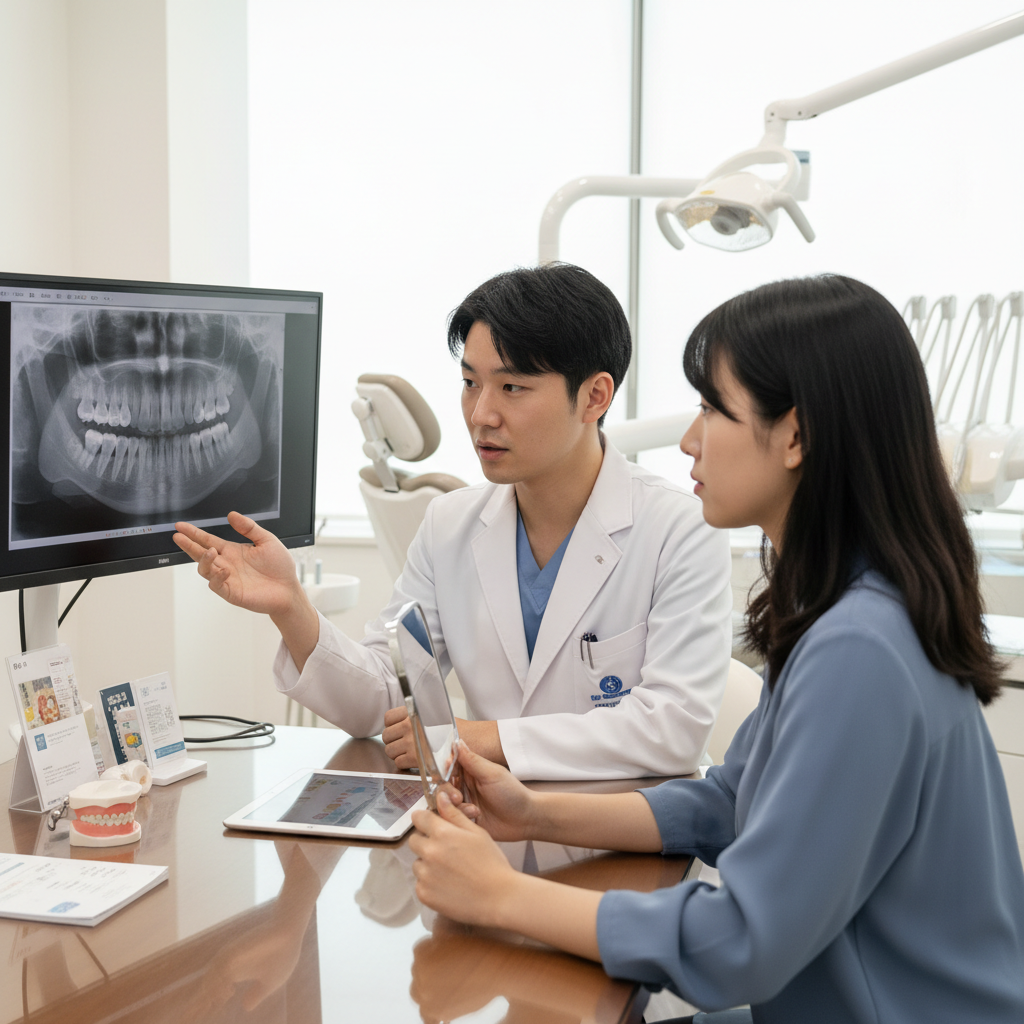 患者様の現在の口腔症状全身の状態を総合的に伺います。また、治療に対してのご希望などもお伺いします。