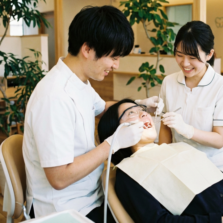 現在抱えている不安なことや、口腔内で気になっていることなどを全体的に伺い患者に負担の少ない状態で治療を行えるように心掛けております。また、歯科恐怖症や子供で治療になれていない患者の場合は必要に応じて認知行動療法などの心理療法も取り入れて安心して治療を受けれるような体制を整えていきます。